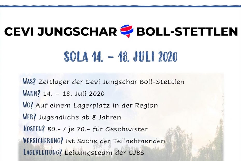 Nach der Verschiebung des regionalen Sommerlagers Cevilisation auf das Jahr 2021 und dem grünen Licht des Bundesrates für Sommerlager haben wir uns entschieden, diesen Sommer ein Sommerlager in unserer Abteilung durchzuführen. Lager nach Jugend und Sport sind unter Einhaltung von Schutzkonzepten möglich. Für das Leitungsteam ist die kurzfristige Planung ungewohnt. Dennoch sind wir optimistisch, ein cooles Lager auf die Beine stellen zu können. Wir werden einen Lagerplatz mit einem kurzen Anreiseweg wählen. Das genaue Lagerthema wird bald bekannt sein, es sind nur noch wenige in der engeren Auswahl. Obwohl noch nicht alle Details geklärt sind, freuen wir uns, wenn du dich möglichst bald anmeldest! Dazu kannst du den Talon unten benutzen. Das Schutzkonzept für Lager sieht folgende Punkte vor: